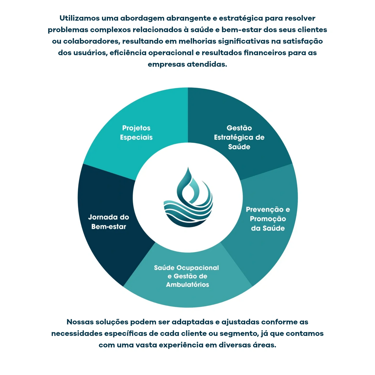 Implementação de programas integrados de saúde corporativa, incluindo a implementação de clínicas no local de trabalho ("on-site clinic"), que oferecem cuidado integral biopsicossocial para colaboradores e seus dependentes.
